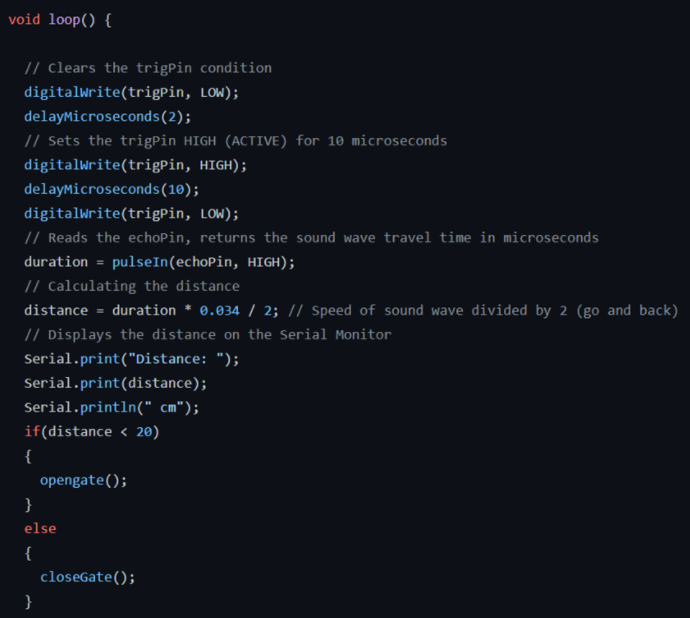 ·2秒后,將執(zhí)行單片機(jī)循環(huán)的下一次迭代,觸發(fā)引腳置低電平,檢查輸入引腳的狀態(tài)以打開(kāi)或關(guān)閉門。